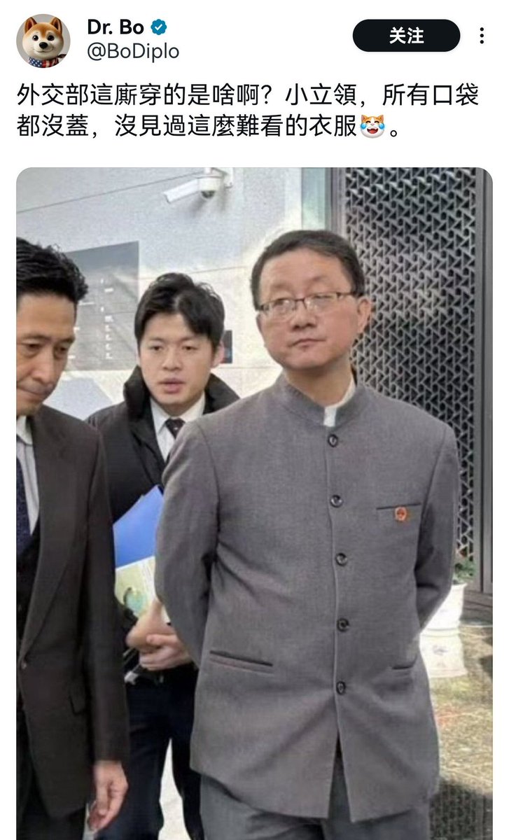 说起来中山装对扣子数量和口袋数量有硬性规定来着人习近平穿的是对的这中国吉娃娃弄了套什么盗版玩意啊逆天😂这一点真是体现出来中国的外强中干的本质台湾这辈子都不敢打了