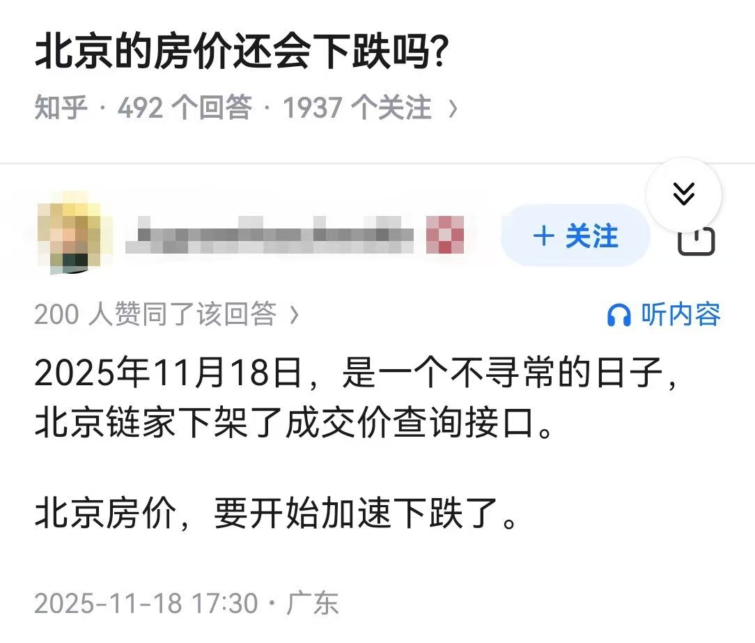北京房价下跌的一个阶段性标志:链家下架了成交价查询接口。