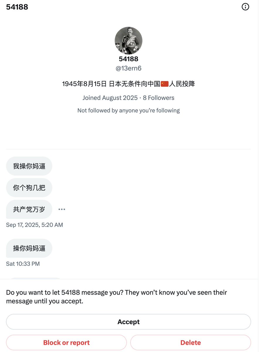 中国粉蛆 试图向发我私信。