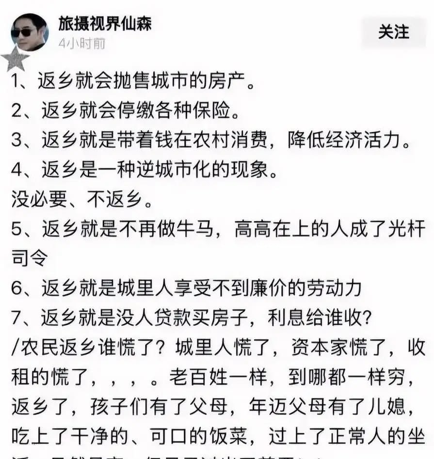 为什么不让农民大规模返乡?返乡就没法给他们当牛马了。