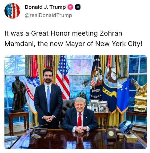 乾坤倒转:特朗普与纽约新市长马姆达尼相谈甚欢,格林发表泣血长信辞去议员职务。