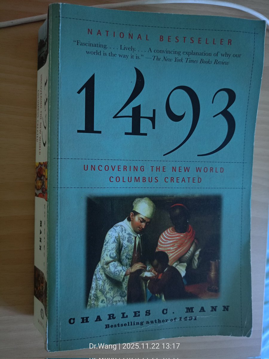 最近在读「1493」,稍有点儿难读。 今年推荐过这本书,把中国明朝放在了历史进程中心,来看“全球化”,美洲的白银、农作物以及人口的交换改变了历史,读起来非常有趣,还单讲了Fujian。喜欢「枪炮病菌与钢铁」的读者会喜欢这本书,推荐!