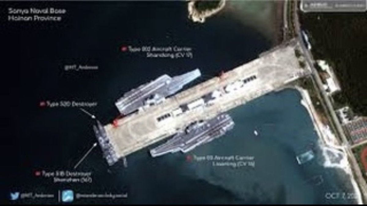 能拍就能「炸」可以清楚地看到中國港口停有雙航母,應該是山東號和剛入列不久的福建號據是週四(11月20日)美國 RC-135W偵察機拍到的,偵察機從日本沖繩空軍基地起飛,在中國海南島中國航母基地上空拍到的。