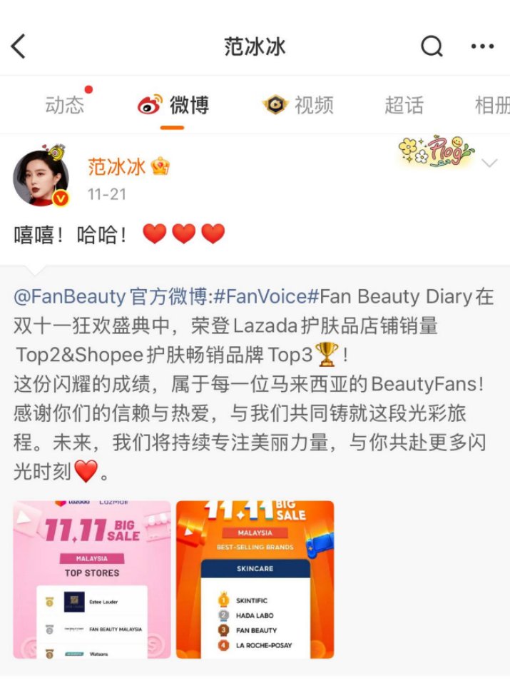 23日凌晨,范冰冰在获得金马奖影后之后发了一条微博。但目前该条微博已经不可见。