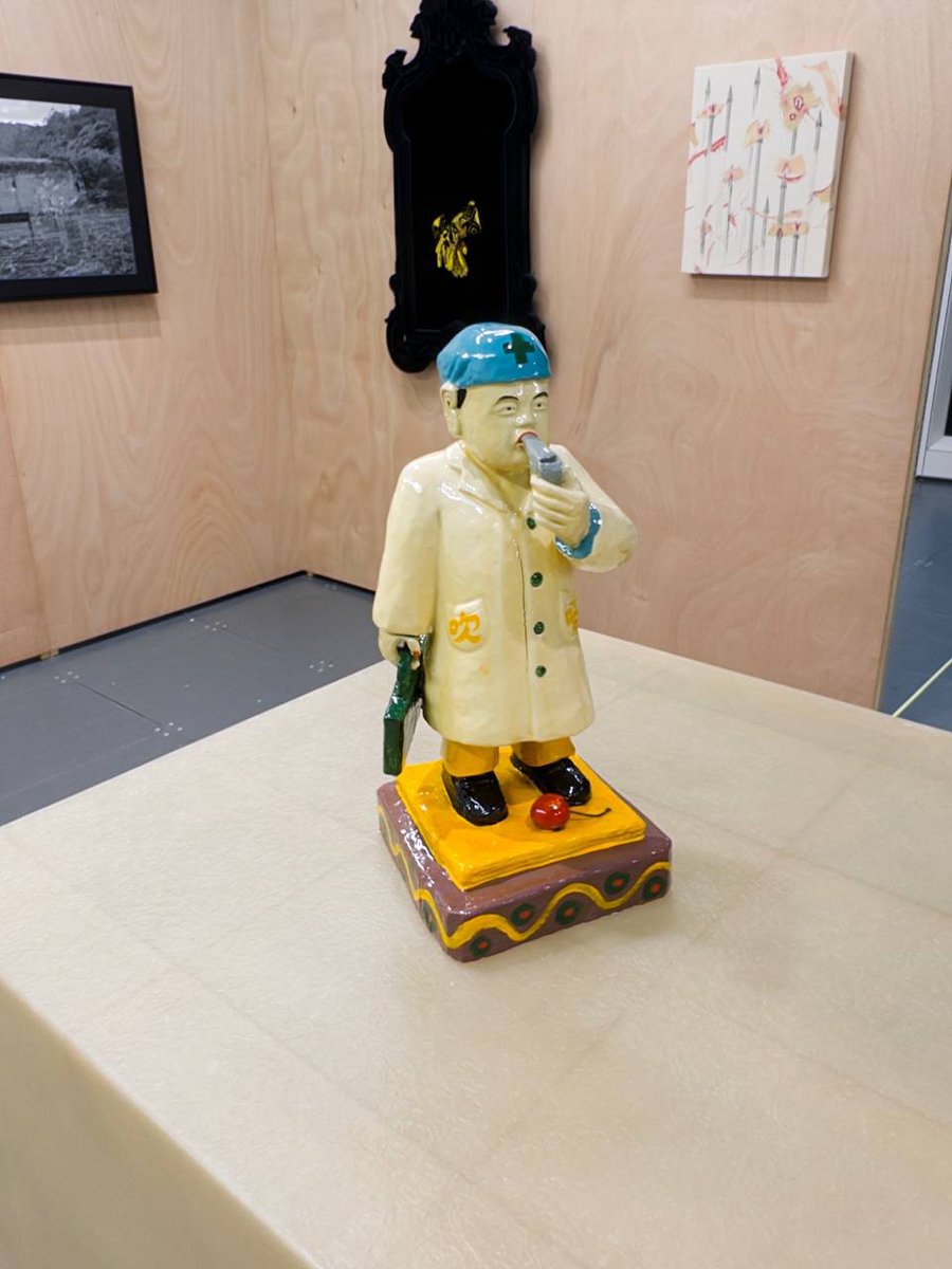 网友投稿:11月23日,在杭州由天目里与天目里美术馆共同主办的“2025荡一圈:杭州当代艺术周”展览中,出现了一件以武汉肺炎吹哨人李文亮医生为原型的艺术作品。此件展品医生吹哨形象,正面白大褂写着“吹哨”,背面写着“一个健康的社会不应该只有一种声音”,手提绿色公文包写着“训”字。