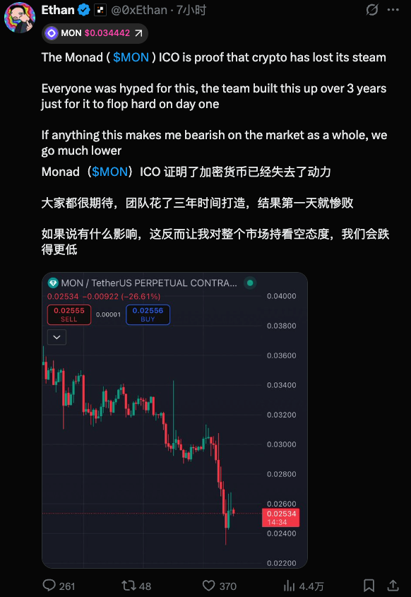 短期我倒是不太觉得 $MON 还能跌回公募成本线附近,首先项目方毕竟融了大笔钱(超过4亿刀)在手里,是有子弹的。其次后面还有不少生态项目需要成长,需要人气,只有小马拉大车才可能把母币飞轮转起来。
