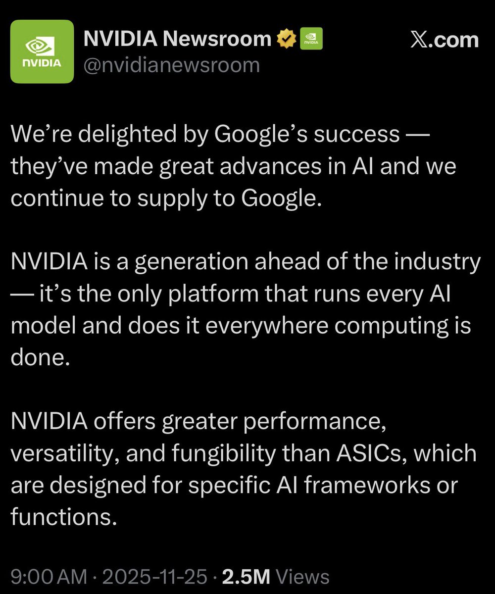 我原来一直有一个疑问如果显卡、芯片的利润极大,为什么别人不做?光刻机难,但芯片则更容易,无非性能做差一点、功耗高一点,多堆一点也能搞算力现在GOOGLE的TPU出来后,原来不是差一点,甚至可以好一点。和币圈一样,一旦龙一地位被挑战,意味着赛道上行趋势开始下降了。