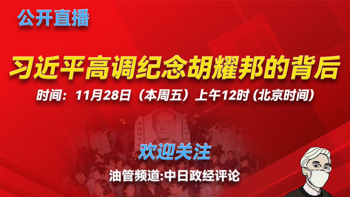 11月28日中午12点(北京时间),公开直播,不见不散!主要内容:习近平高调纪念胡耀邦的背后;习近平和红二代的和解;深圳市委书记难产背后的激烈博弈;宁波市委书记王成,南京市长背的高层背景。