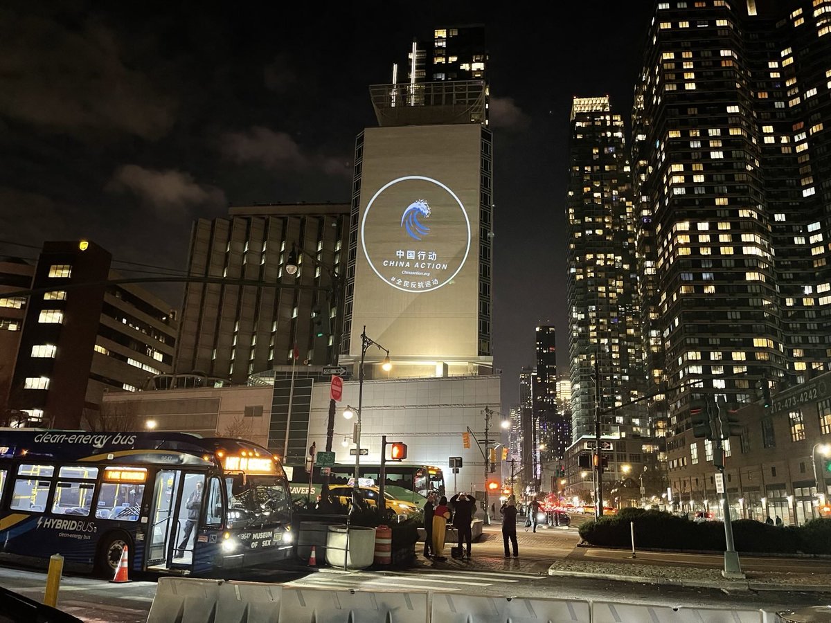 此次投影行动的参与者为“中国行动”组织在纽约的成员和志愿者。