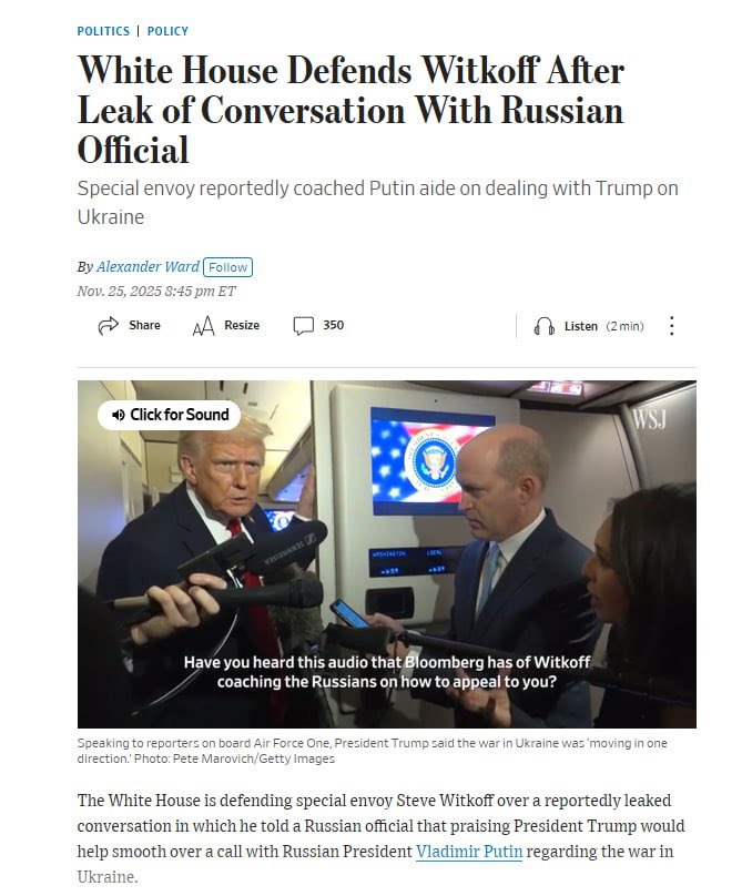 《华尔街日报》和彭博社证实了如今已无可辩驳的事实:史蒂夫·维特科夫帮助俄罗斯阻挠了乌克兰获得战斧导弹。他向克里姆林宫透露了泽连斯基访美的消息,使莫斯科有时间安排了一次通话,最终说服特朗普否决了这笔交易。维特科夫并非只是犯了错误,他实际上是与普京政权勾结,积极地破坏乌克兰的国防
