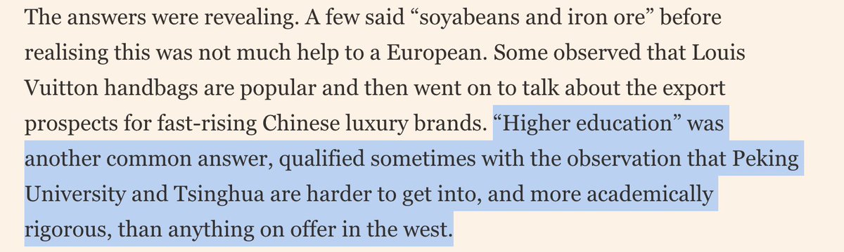 Can we talk about this for a second? Do we actually believe that Peking University is more academically rigorous than Harvard and MIT? Does the person writing this not know that you have to pass a class on Mao Zedong Thought to graduate from Peking University? You can deservedly