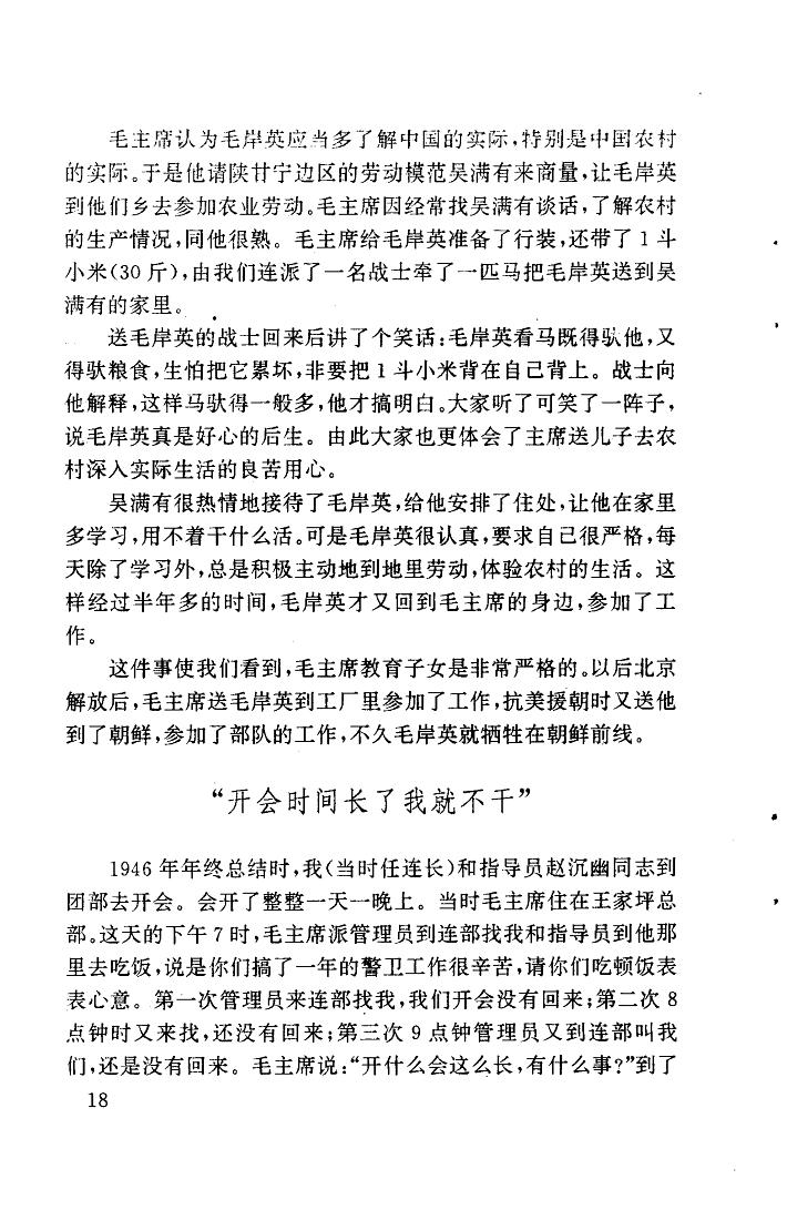 毛岸英骑着马,马背上还驮着一斗小米。他看到马太累了,就把小米放在自己背上,自己仍然骑着马。战士向毛岸英解释,这样马驮得一样多。毛岸英这才想明白了……这一年,毛岸英17岁。