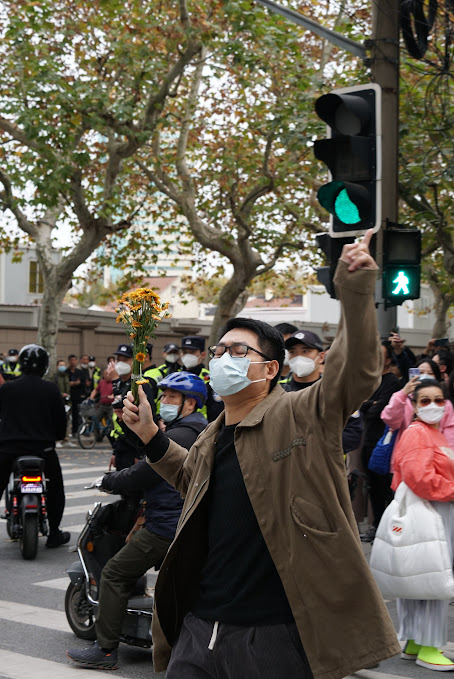 三年前乌鲁木齐中路的“鲜花哥”,发文回忆白纸运动