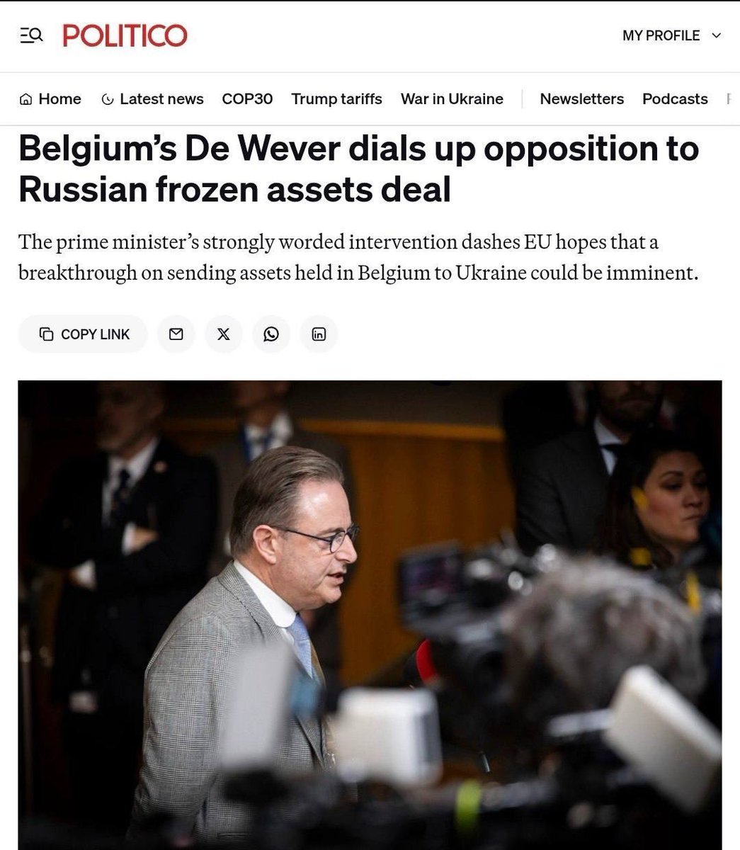 The Belgian Prime Minister has blocked the EU plan regarding Russian assets, — Politico