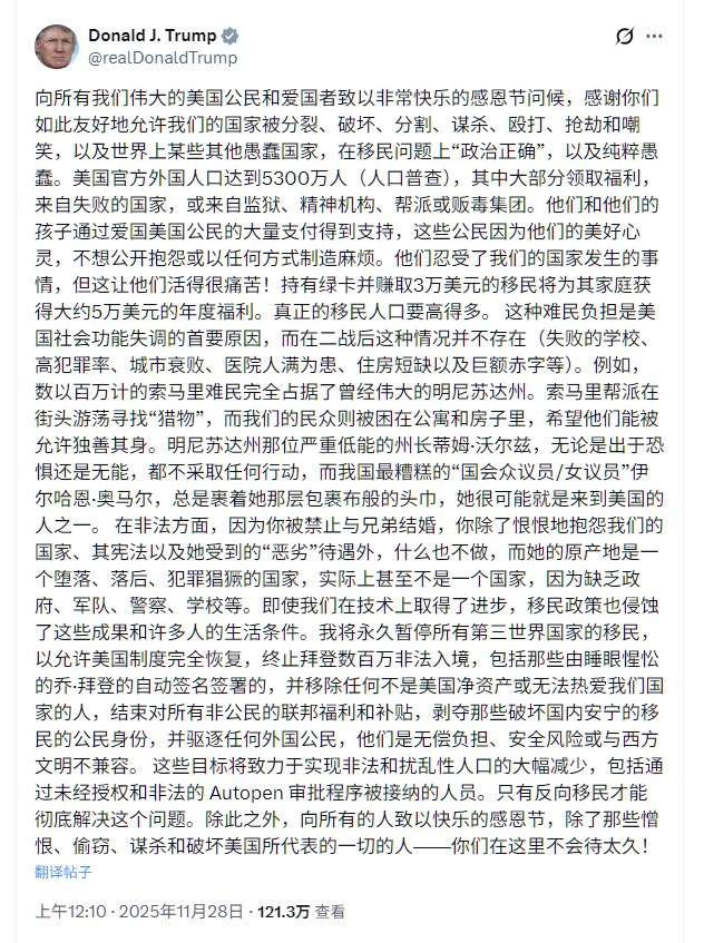 川普把感恩节变成仇恨节,这条跛脚疯鸭政治生命行将终结,越挣扎死得越快。