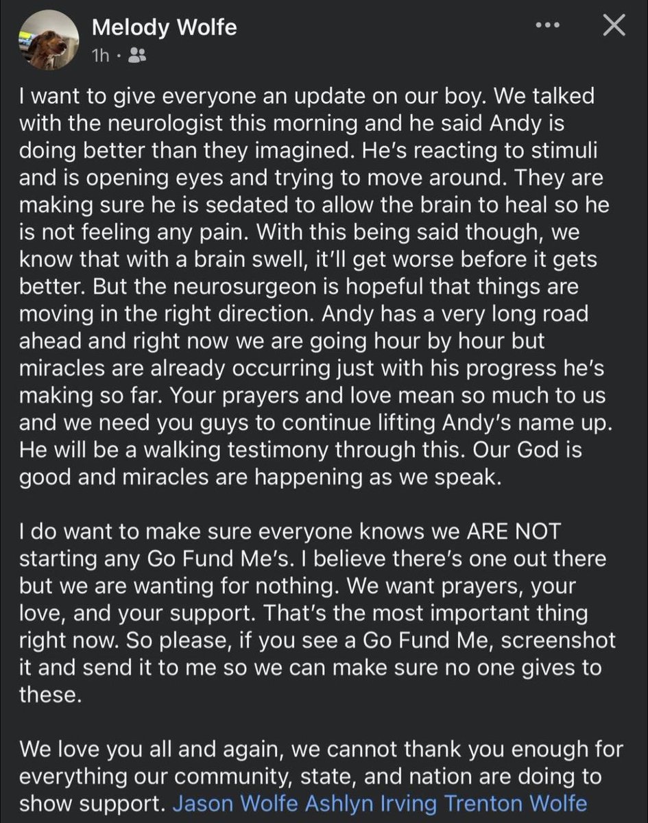 UPDATE: National Guardsman Andrew Wolfe’s mother issues update on son’s condition.“Andy is doing better than they imagined.”