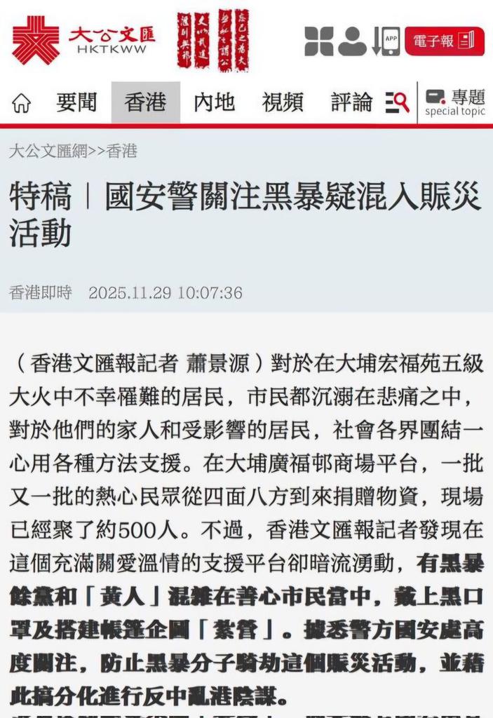 香港中共党媒文汇报报道,香港国安处总警司李桂华已亲自带队前往 #香港大埔火灾 现场视察,严查严防“反中乱港”分子“恶意赈灾”,危害国家安全!#灵堂维稳