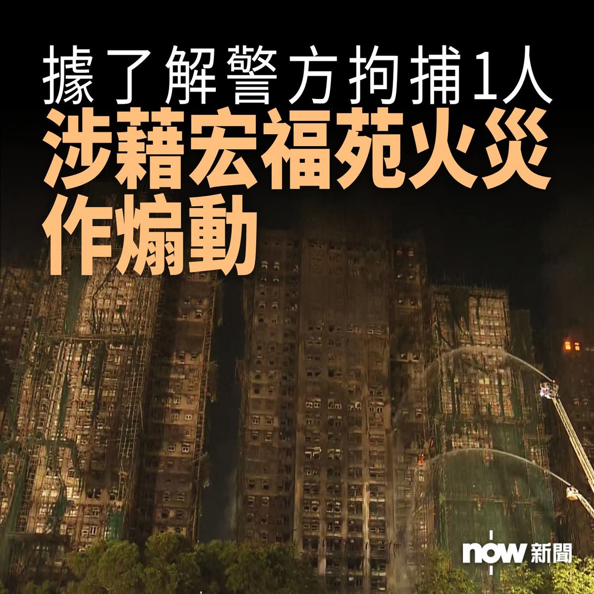 NowTV reports that the Hong Kong police have arrested one person for attempted sedition near the Wang Fuk Estate fire in Tai Po