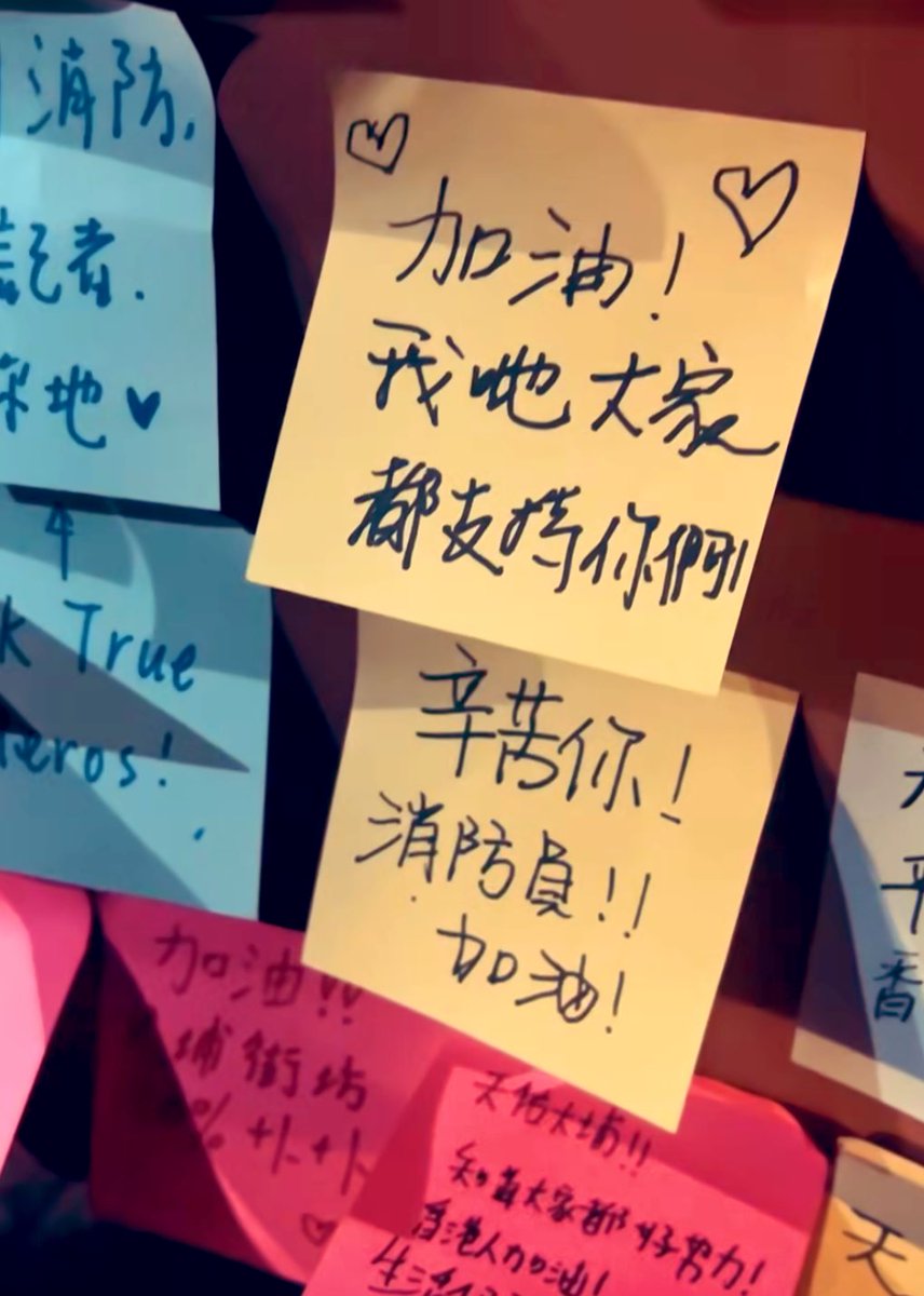 1554: #LennonWall is here again. Citizens put their deepest thoughts using post-it notes on the wall for the victims, survivors and everyone who has contributed to #TaiPoFire search and rescue. #1129hk #HongKongFire