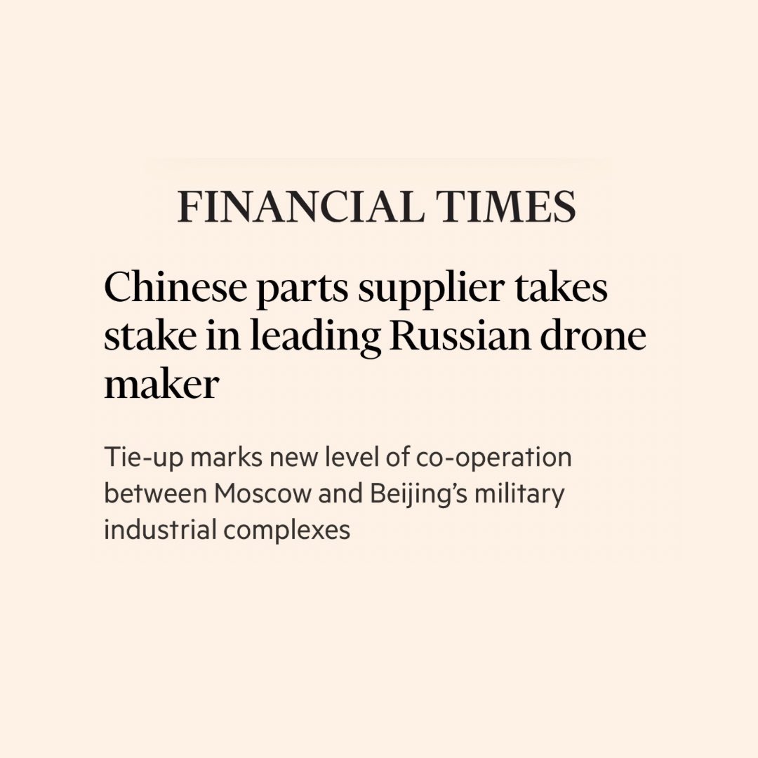 JUST NOW: The owner of a major Chinese drone parts supplier has taken a stake in Rustakt, a leading Russian manufacturer of the VT-40 FPV drone widely used by Russia against Ukraine.