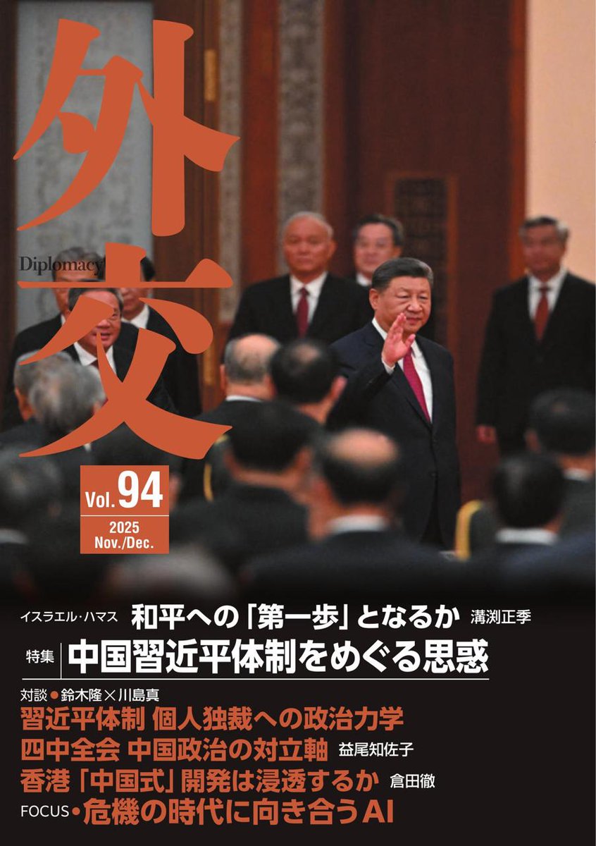 11月28日,日本外务省官网发布消息称,《外交》期刊第94卷正式出版。本期专题聚焦“中国习近平政权的诸多考量”。该刊物由日本外务省外交史料馆发行,第 94 卷的开篇文章为一篇对谈,题为:《习近平体制:迈向个人独裁的政治力学》。