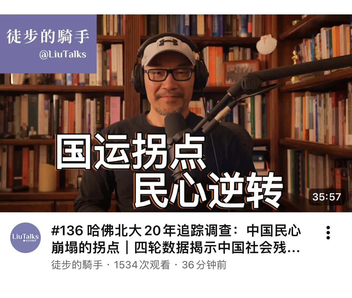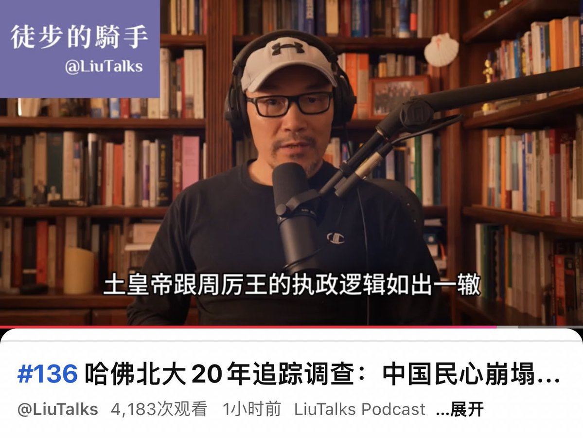 推荐“徒步的骑手”这期节目。博主指出2023年是中共国的国运和民心的拐点,中共土皇帝习近平在疫情期间无法无天的大折腾砸烂了中国经济,原本向上的国运被砸到快速下堕,还强制人们“正能量”,2800年前周厉王的“道路以目”正在今日中国再现。博主的评论信息量极大很有思想深度,特推荐与网友共享。#136