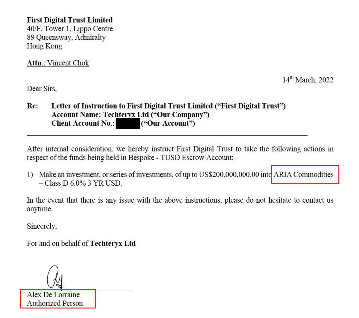 3/ Tx 公司台前授权人Lorraine 签字指挥 FDT 把一大笔钱 4.56 亿美金向Aria Commodites转账。然后从2021年5月份开始到2022年3月,有的时候10M有时候100M,转了半年。