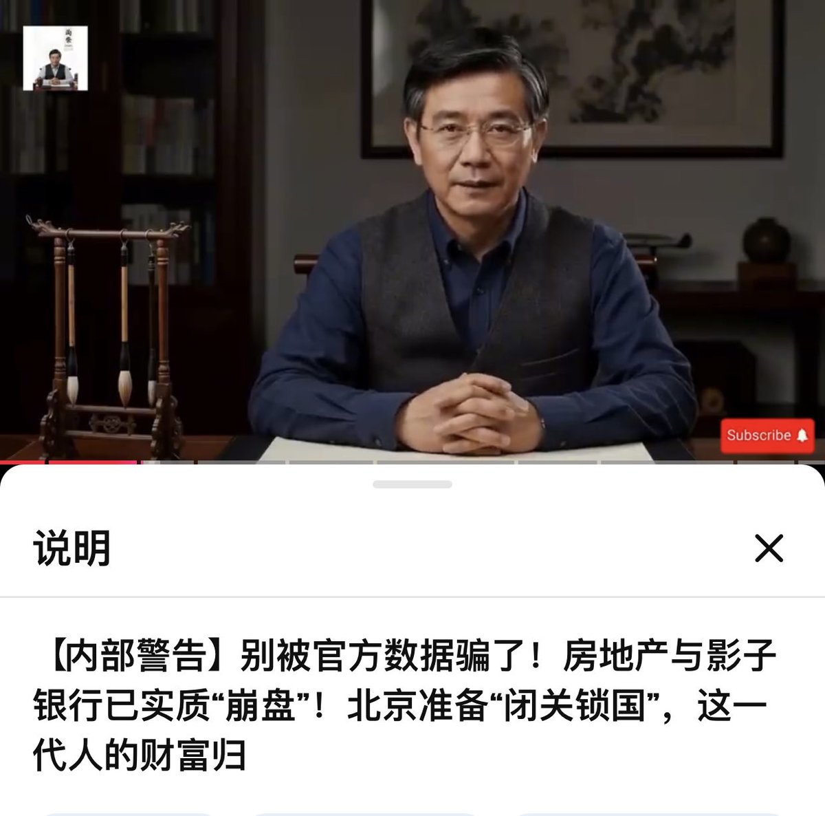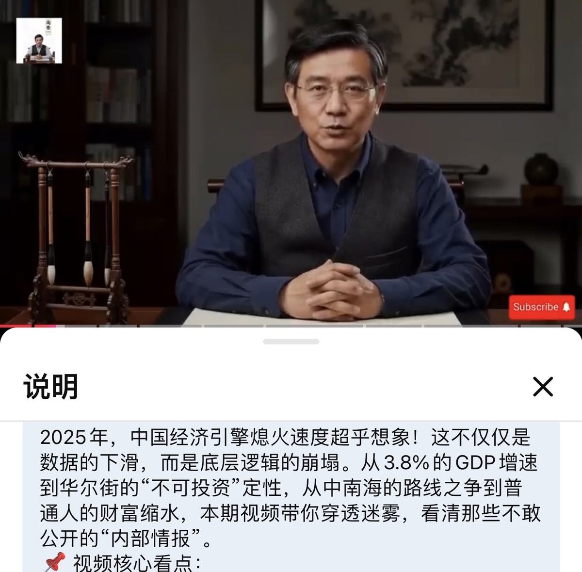 昨天我推荐了“徒步的骑手”YouTube节目,谈中共国国运与民心的拐点,今天推荐YouTube“洞察”的节目,谈2025年中共国经济真相。 习近平上台以来砸烂经济掏空国库,恶果正在显现。 【内部警告】别被官方数据骗了!房地产与影子银行已实质“崩盘”!北京准备“闭关锁国”,这一代人的财富归 https://t.co/htShQTlEZM 来自 @YouTube