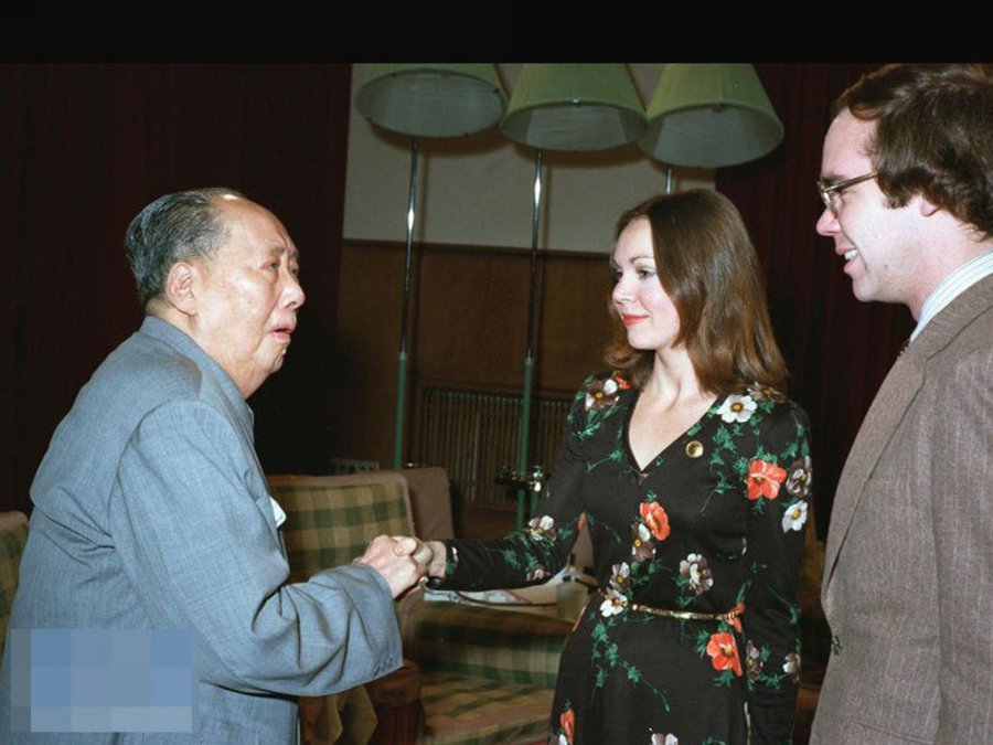 图:1975年12月31日晚上,毛泽东接见美国前总统尼克松的女儿朱莉与她的丈夫戴维。
