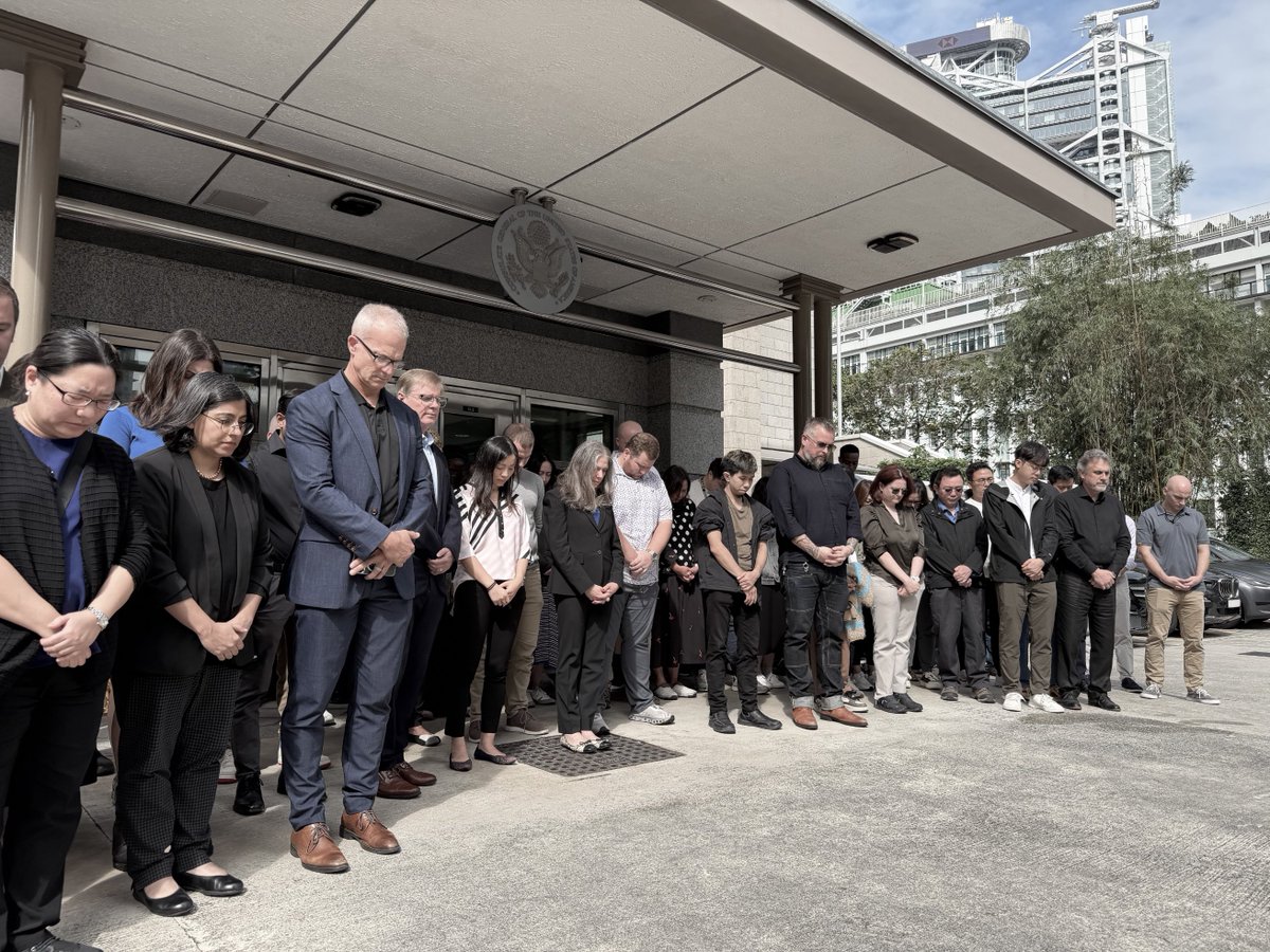 Today, Consul General Julie Eadeh and the entire Consulate community observed a moment of silence to honor the victims of the tragic Tai Po fire. Our thoughts remain with the Hong Kong community at this difficult time.
