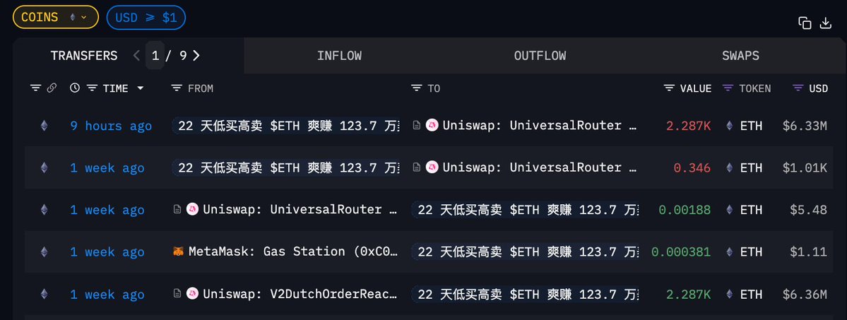 “636 万美金做波段只赚了 3 万也得跑了,这行情不亏就是赚”😂$ETH 波段大户 0x248...87976 9 小时前在链上单笔出售了 2287 ETH(632 万美元),卖出价格 $2766.38;这部分代币是一周前以 $2781.26 建仓的,期间一度浮盈 70.3 万美元,但因未及时止盈最终仅获利 3.3 万美元钱包地址