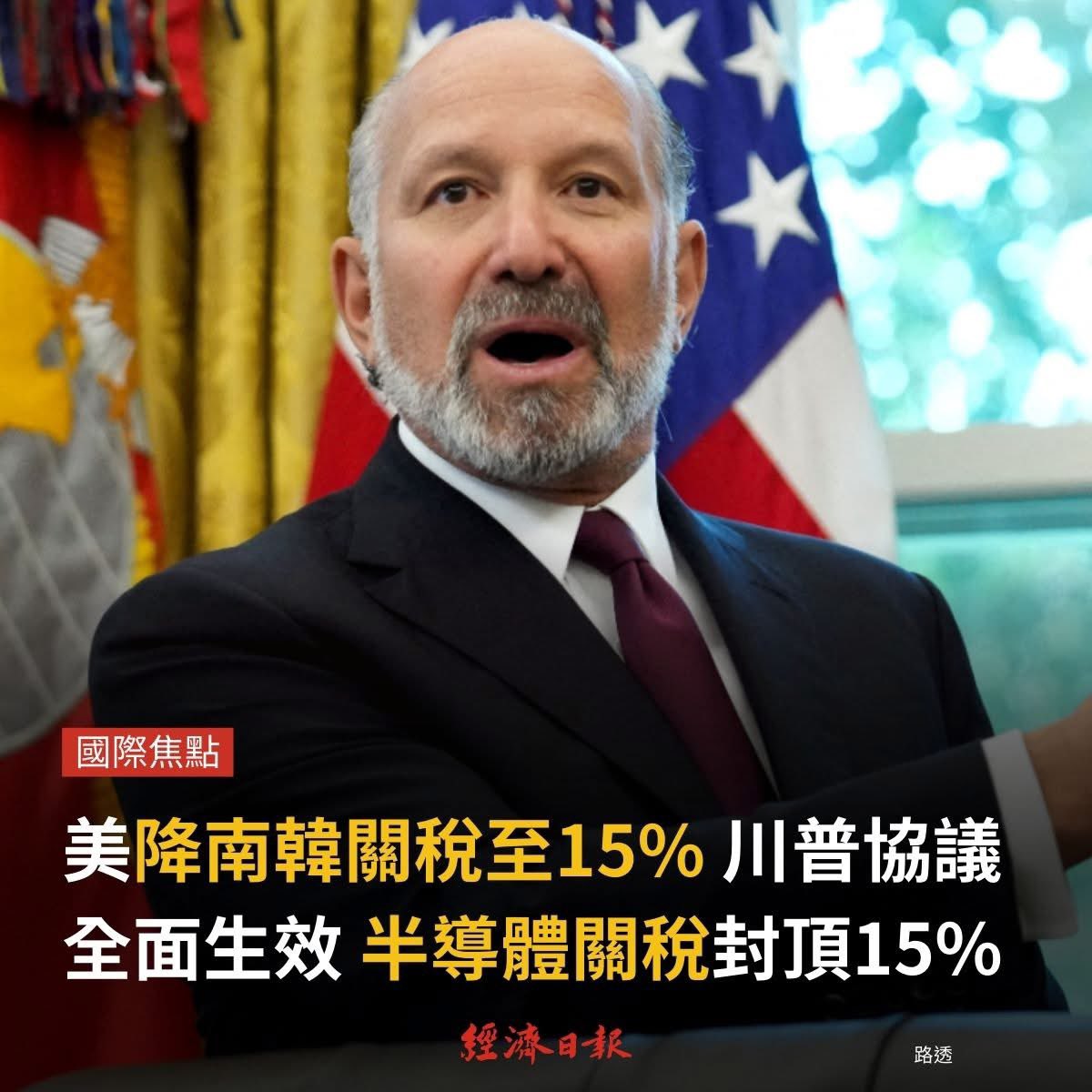美國同意降低韓國關稅至15%,這讓韓國加入最優惠一檔。