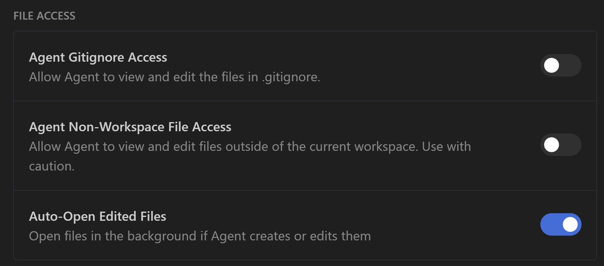 难道是他将Agent Non-Workspace File Access设成ON了(图二)