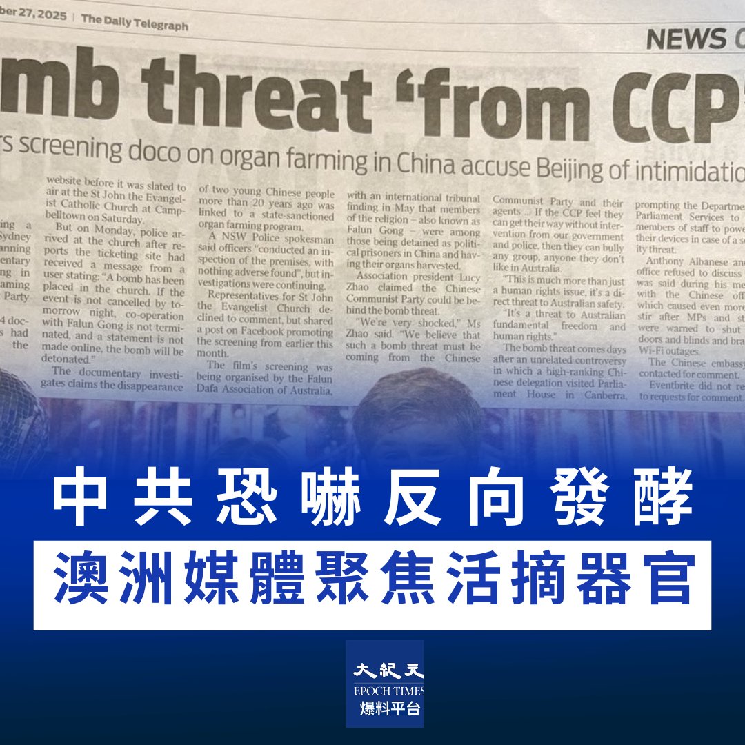 中共恐嚇反向發酵 澳洲媒體聚焦活摘器官