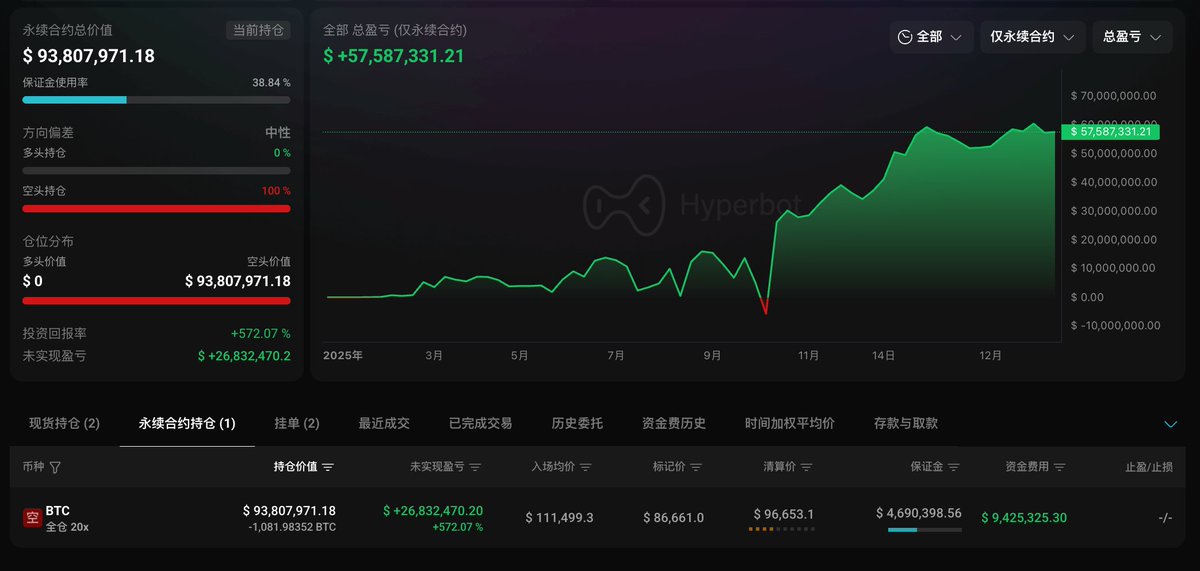 「2025.03 以来连续四次做空 $BTC 巨鲸」15 分钟前再次减仓 20 $BTC 并获利 50.1 万美元,今年以来已累计获利超 5758 万美元🚩他的剩余 1,081.98 BTC 空单仍浮盈 2683 万美元,开仓价 $111,499.3,资金费吃了超 942.5 万美元;目前在 [$67,244, $67,844] 激进的价格区间挂了 1300 BTC