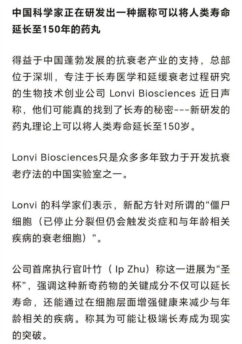 墙内微信热传此截图,下面的科学家已全力加速⏩,为习近平 #活到150岁 撸起袖子加油干💪!