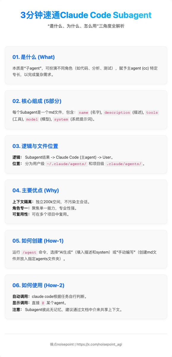 之前有分享一篇claude code入门教程,里面提到了subagent,这篇再来详细介绍下在cc中subagent这个功能,具体是什么、有什么好处、怎么用。