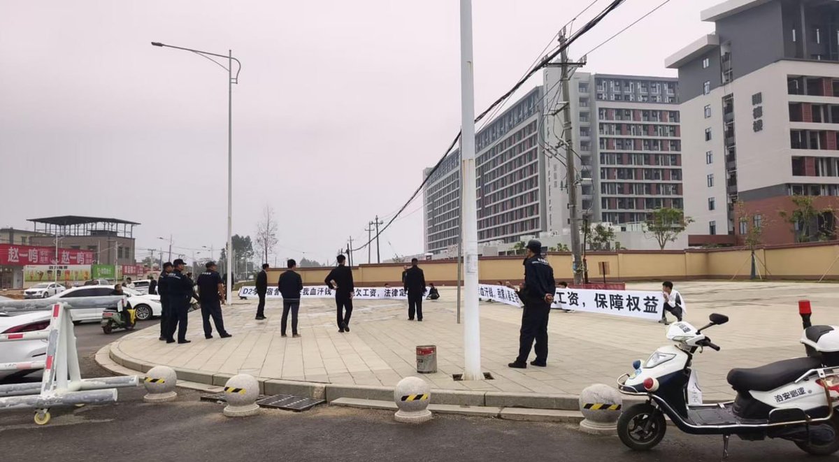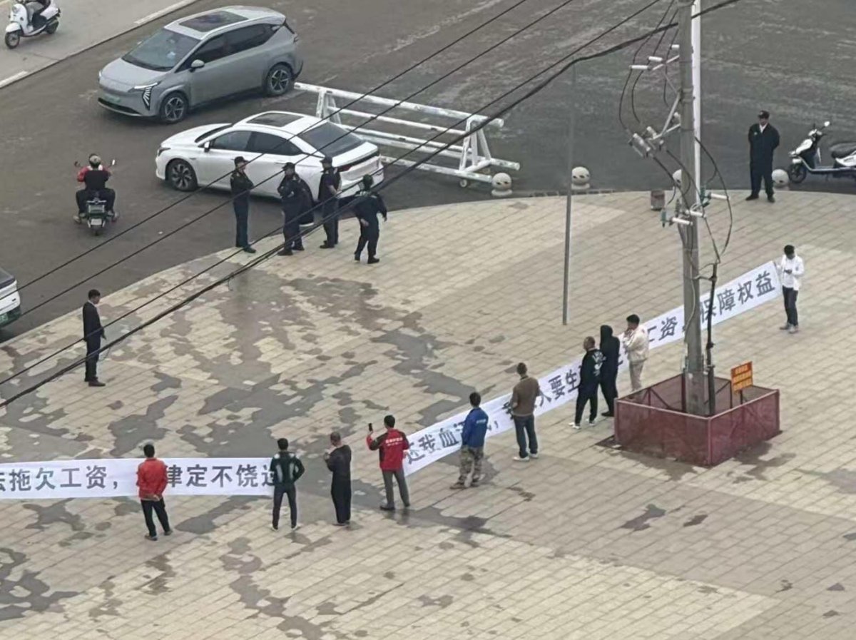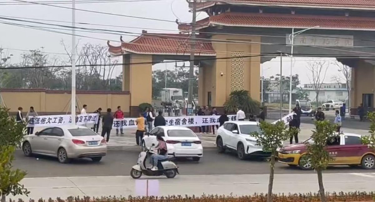 12月1日,广东省湛江市,十几名农民工聚集岭南师范学院,采用拉横幅的方式讨要被拖欠的工资。