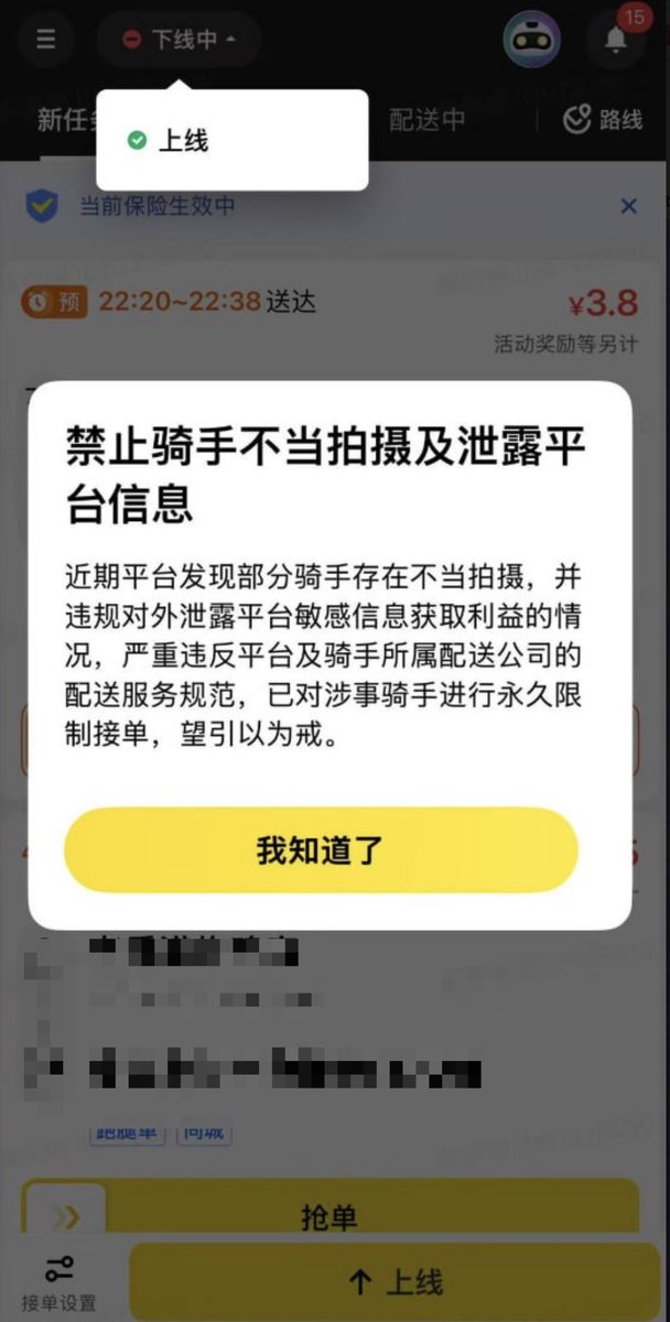 12月2日,美团外卖发布新规,禁止骑手对 App 内页面进行截图,一经发现将永久封号处理。根据公告内容,已有骑手因违规截图被永久封禁。