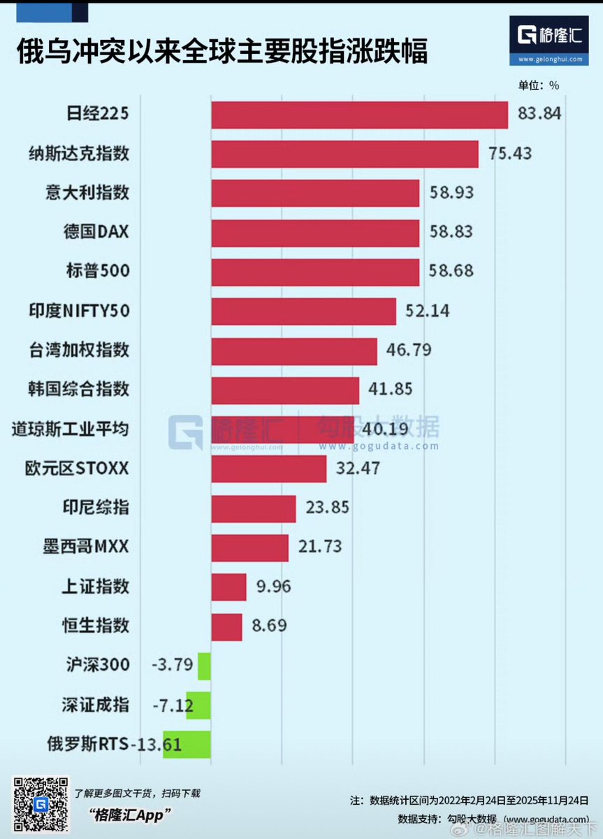 俄乌冲突爆发以来在主要市场中,中国股市仅跑赢俄罗斯股市