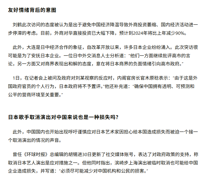 此番急转直下的态度,被视为中国在外交强硬与经济现实之间的艰难平衡。2024年,外资对中国直接投资额预计同比骤降近90%,经济下行压力下,北京急需稳住日企等外资信心。大连作为改革开放以来日本企业最密集的城市之一,象征意义尤为突出。此次“电击式”访问,正是向日本经济界释放“政治归政治、经济归经济”的信号。
