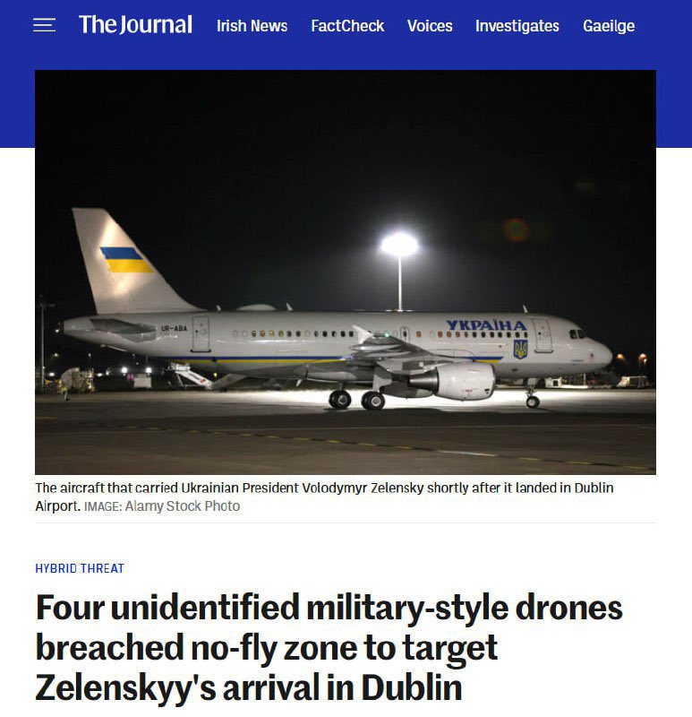 要刺殺澤連斯基?在烏克蘭總統啓程前往愛爾蘭之際,四架身份不明的軍用無人機違反了禁飛令飛來據愛爾蘭門戶網站 《The Journal》 援引消息人士報道。《華爾街日報》消息人士透露,四架“軍用型無人機”抵達都柏林機場附近,澤連斯基乘坐的飛機原定於晚上 11