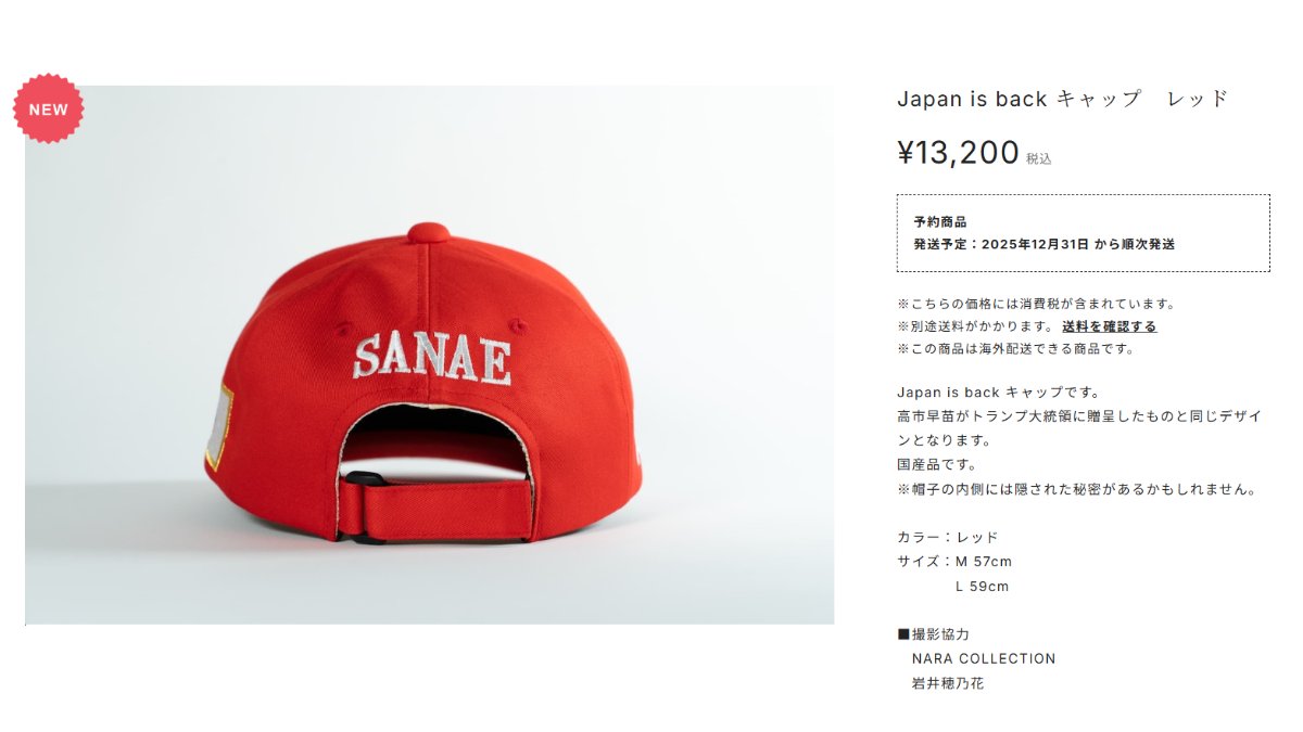高市早苗官方應援店上架了她為特朗普訪日時準備的 “JAPAN IS BACK”帽子。售價 13200円(約600人民幣),比特朗普官方店賣的 MAGA 帽子(55美元)要貴不少。😂