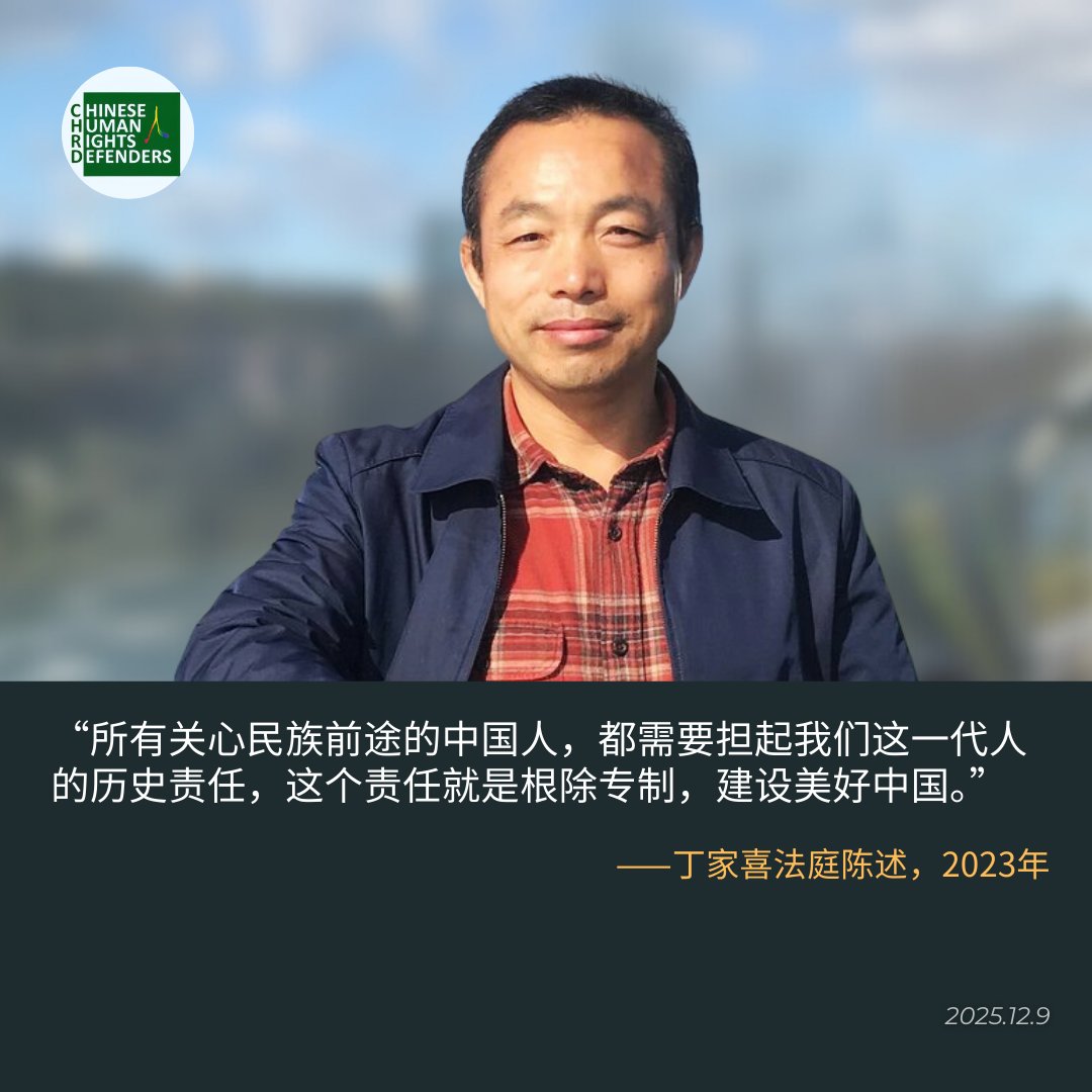 “所有关心民族前途的中国人,都需要担起我们这一代人的历史责任,这个责任就是根除专制,建设美好中国。”——丁家喜法庭陈述,2023年#国际人权日