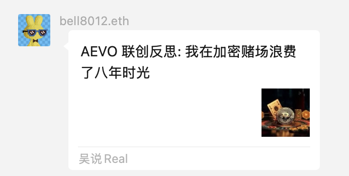 AEVO 傻逼联创最近跑去接受采访装个逼说“浪费了八年,除了赚钱之外很失望”。听到这段话我真的笑了:这潜台词不就是——币圈的钱实在太好赚,韭菜多到让我产生人生虚无感了吗?