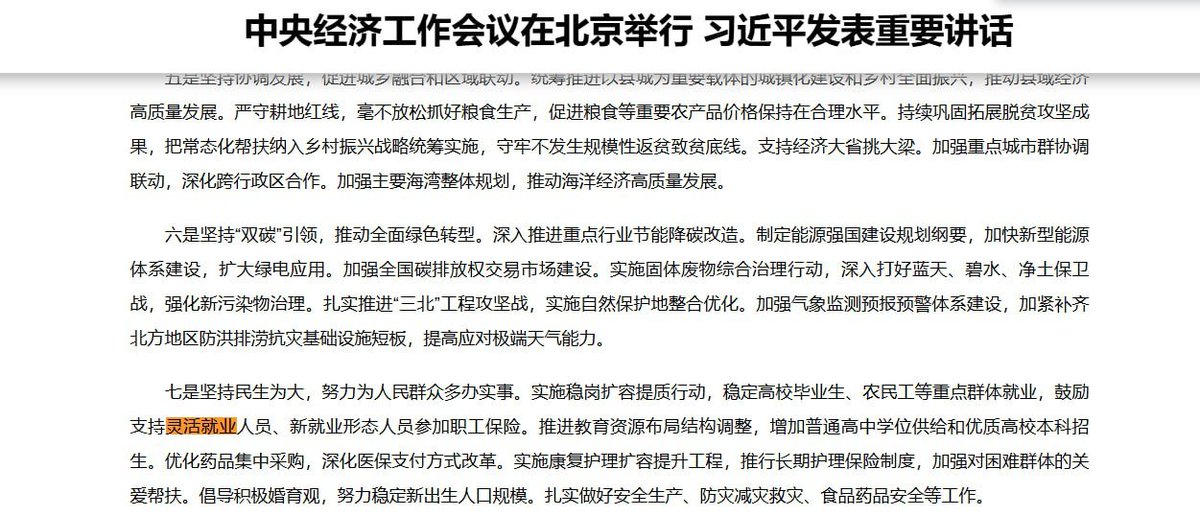 12月11日,中央经济工作会议在北京举行,会议提出:鼓励支持灵活就业人员、新就业形态人员参加职工保险。