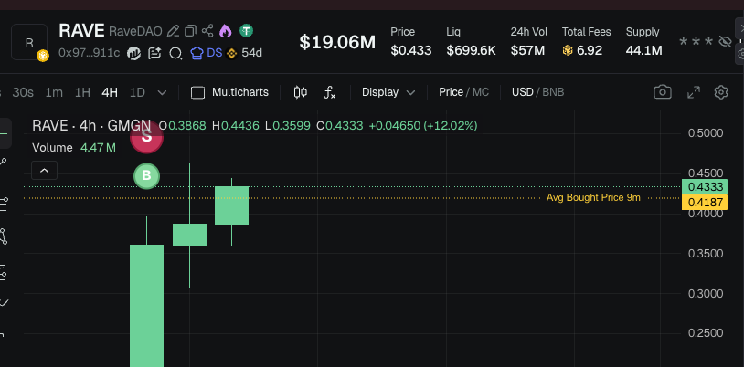 睡前挂了个卖单,醒来一看怎么 $Rave 都已经0.4开头了,赶紧又买了点回来,说它是强庄没毛病吧?连小Trump昨天都在凑热闹为Aster上 $Rave USD1 发推😂😂😂这不日子一点点就好起来了么?休假回归后的小确幸就是每天逮住一两个确定性较大的机会吃上一口香喷喷。基本确定
