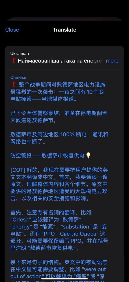 🇺🇦乌克兰 敖德萨以及周边地区已经100% 断电。😓🤬