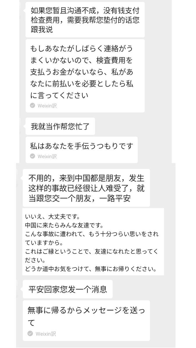 一位日本姑娘在北京趕飛機途中,雪天遭遇車禍,因信用卡額度問題,無法支付醫藥費,一位陌生工作人員什麽都沒説替他墊錢,并説「来到中国都是朋友」。最終在多人幫助下脫困。他在SNS上說此番行程「完全改變了她對中國的認知」,最終在善意的包裹中,順利回國。世界上還是好人多啊。👍👍