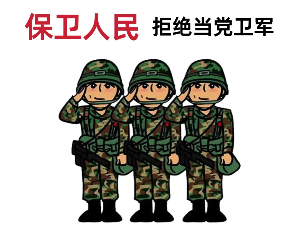 各位是否意识到你们头顶的军徽章所代表的“人民”早已被中共掏空。共产党让你们相信自己在“保卫祖国”,实际上却是在维持一个以谎言、暴力、奴役为实质的邪恶政权;共产党让你们举起右手向党旗宣誓,可你们想过没有,他们何时让你们向宪法宣誓、向人民宣誓?